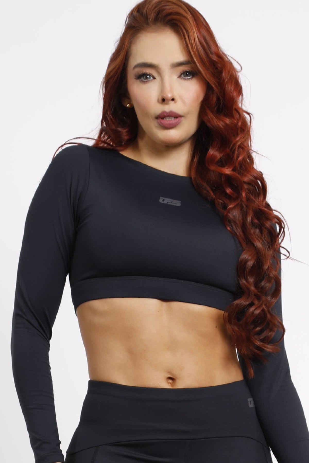 Camibuso en microfibra de compresión con manga larga y frente cerrado, con un diseño posterior en capas cruzadas y paneles en malla elástica que mejoran la transpirabilidad. Incorpora aberturas anguladas para un calce más anatómico y dinámico.