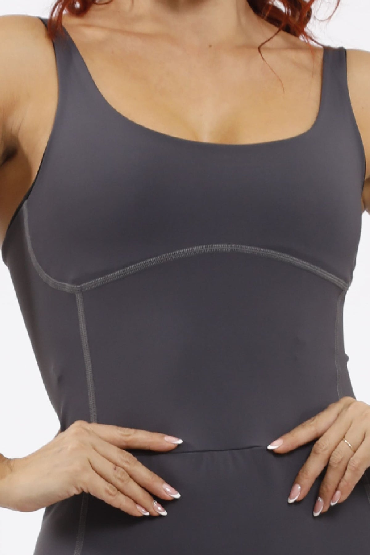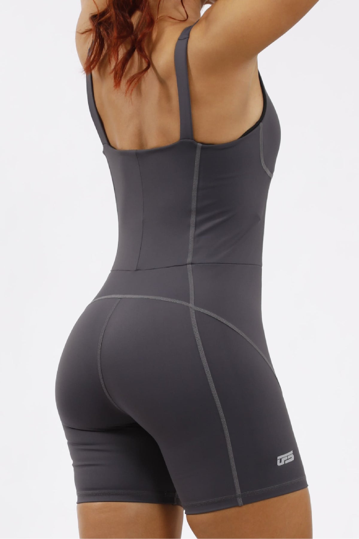 Enterizo deportivo en microfibra de compresión. Su diseño de tiro alto estiliza la zona abdominal, mientras que los cortes anatómicos en delantero y posterior aportan soporte y realce natural. Cuenta con cargaderas delgadas para mayor libertad de movimiento