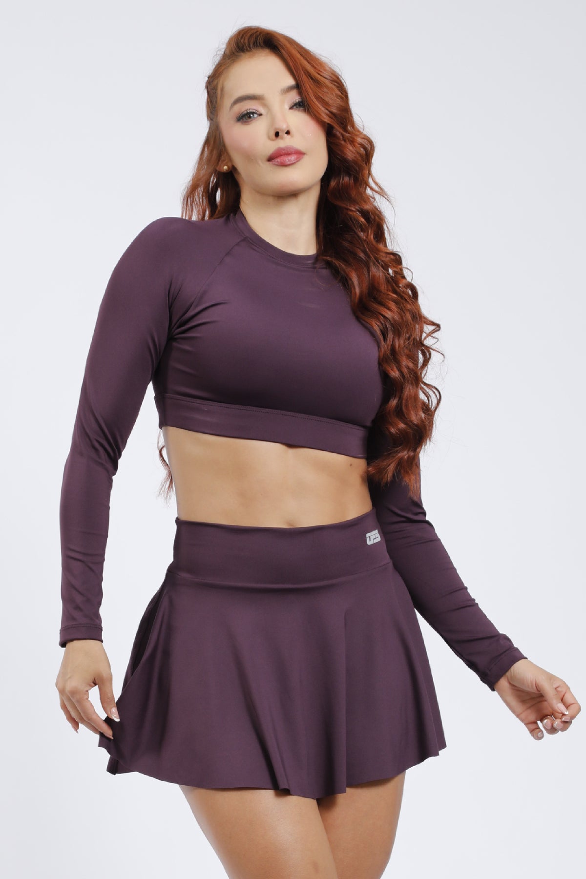 Conjunto de falda short y camibuso en color uva